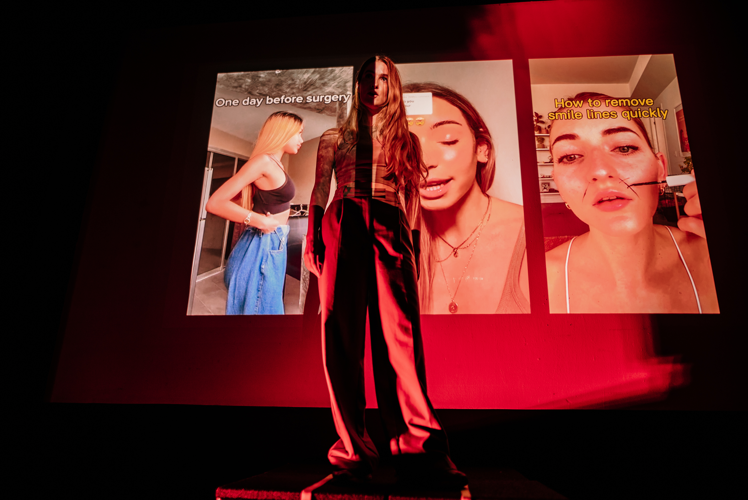 In Beautify wordt deze digitale impact tastbaar door het publiek fysiek rond te laten lopen in een interactieve installatie waar documentaire, social media en performance samenkomen.